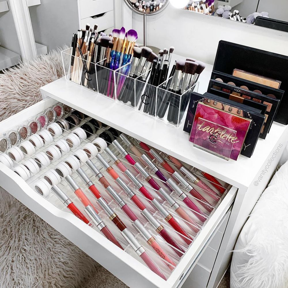 不只可以放出你的常用唇膏,連其他化妝品(例如粉底、化妝掃、眼影等等)也可以一起好好收納。這樣便可以輕易配搭日常妝容,絕對省卻不少時間哦!
