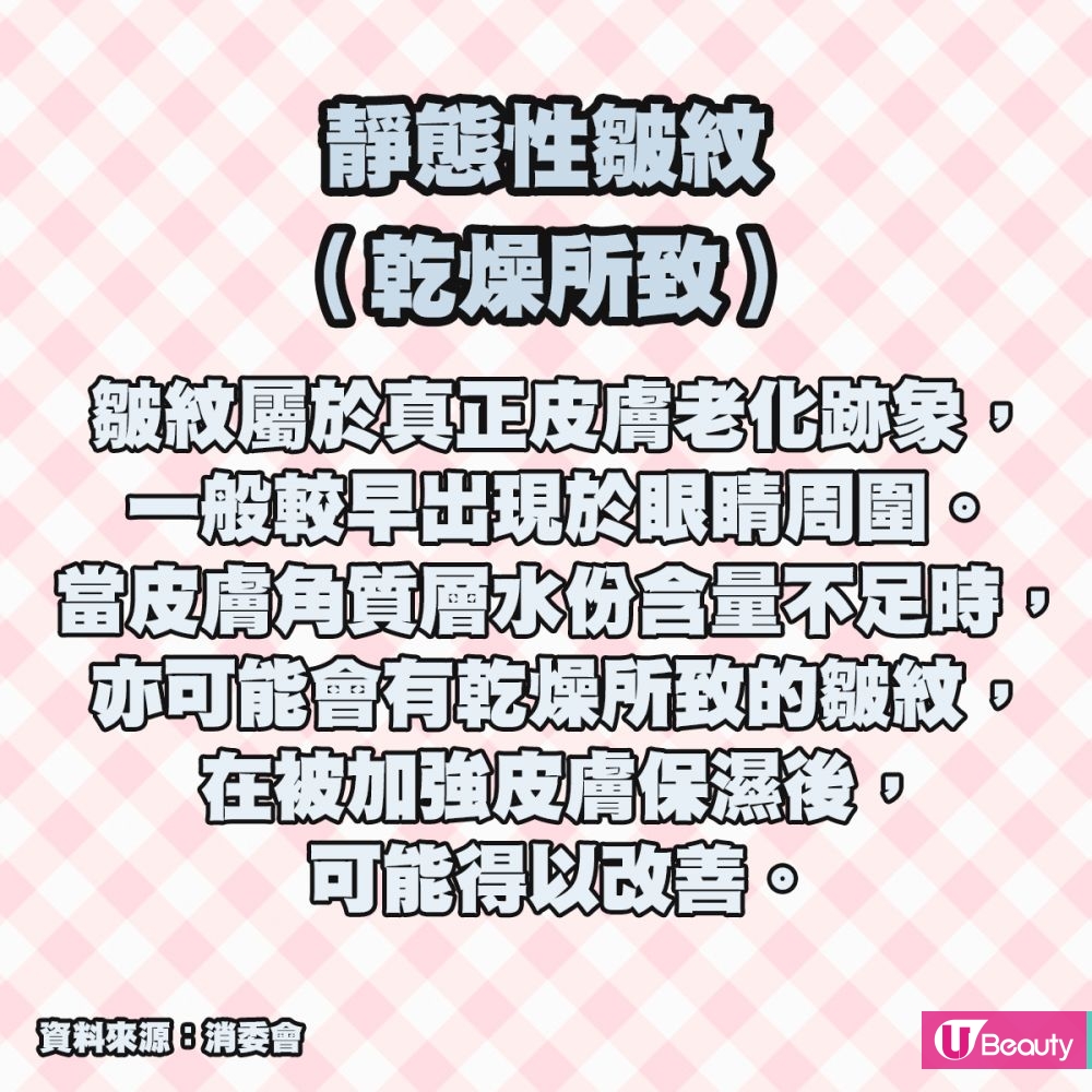 想要有效對抗皺紋,選擇適合自己的去皺產品同樣重要。首先,你要判斷自己的皺紋是屬於哪類?動態性還是靜態性?對症下藥,才能發揮產品最大效用,踢走初老跡象。