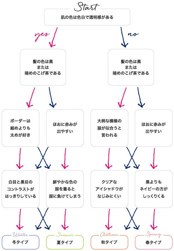 皮膚和頭髮、眼白和黑眼珠之間形成柔和的對比。具有女人味和優雅的氛圍,推薦使用暗粉紅色、或帶藍調和銀色的色調,以增強膚色的透明感。