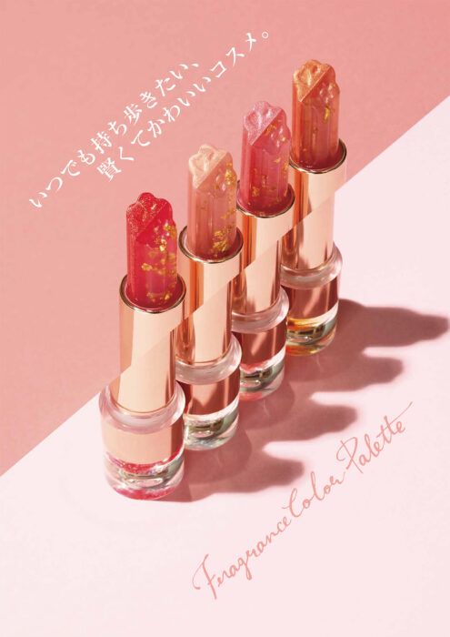 雙層的唇膏設計,讓你護唇同時潤色,看起來自然又有朝氣。唇膏切角成可愛的花朵形狀,配上金屬管身,底部則保留相應色號的花瓣,貫徹品牌的彩妝特色,同時也讓唇膏質感有所昇華。