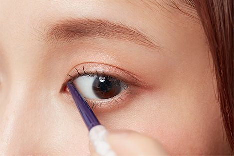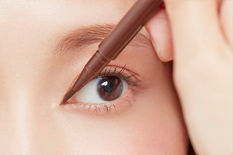 POINT︰畫成「く」形,繪畫時眼睛望向眼尾方向,把眼線筆斜放,便能畫出自然的線條。