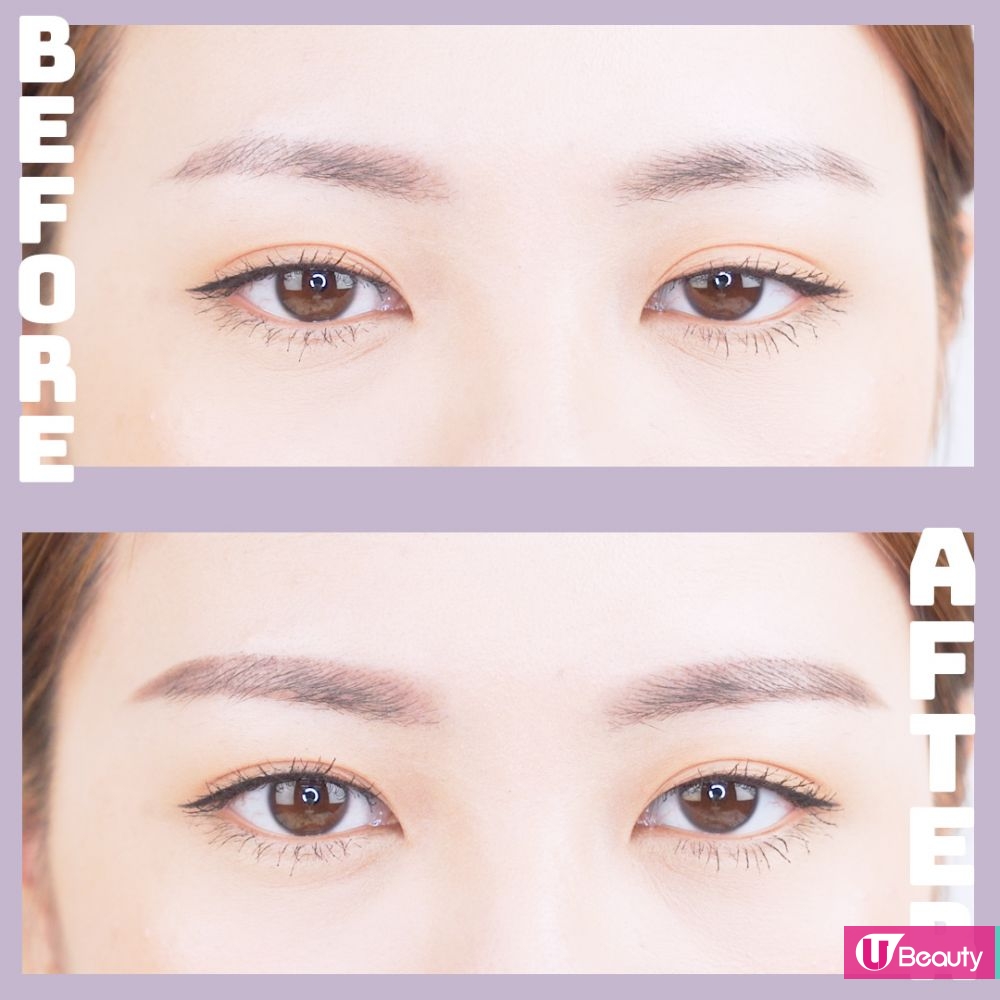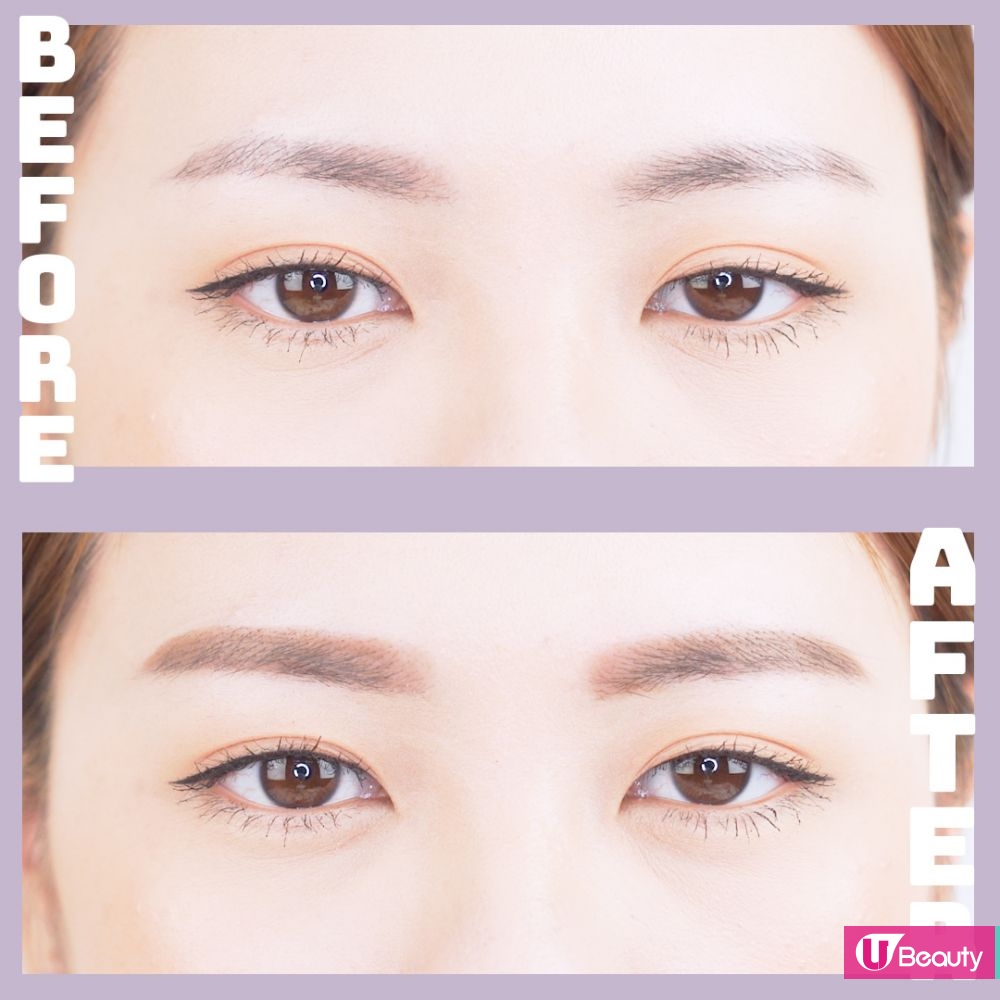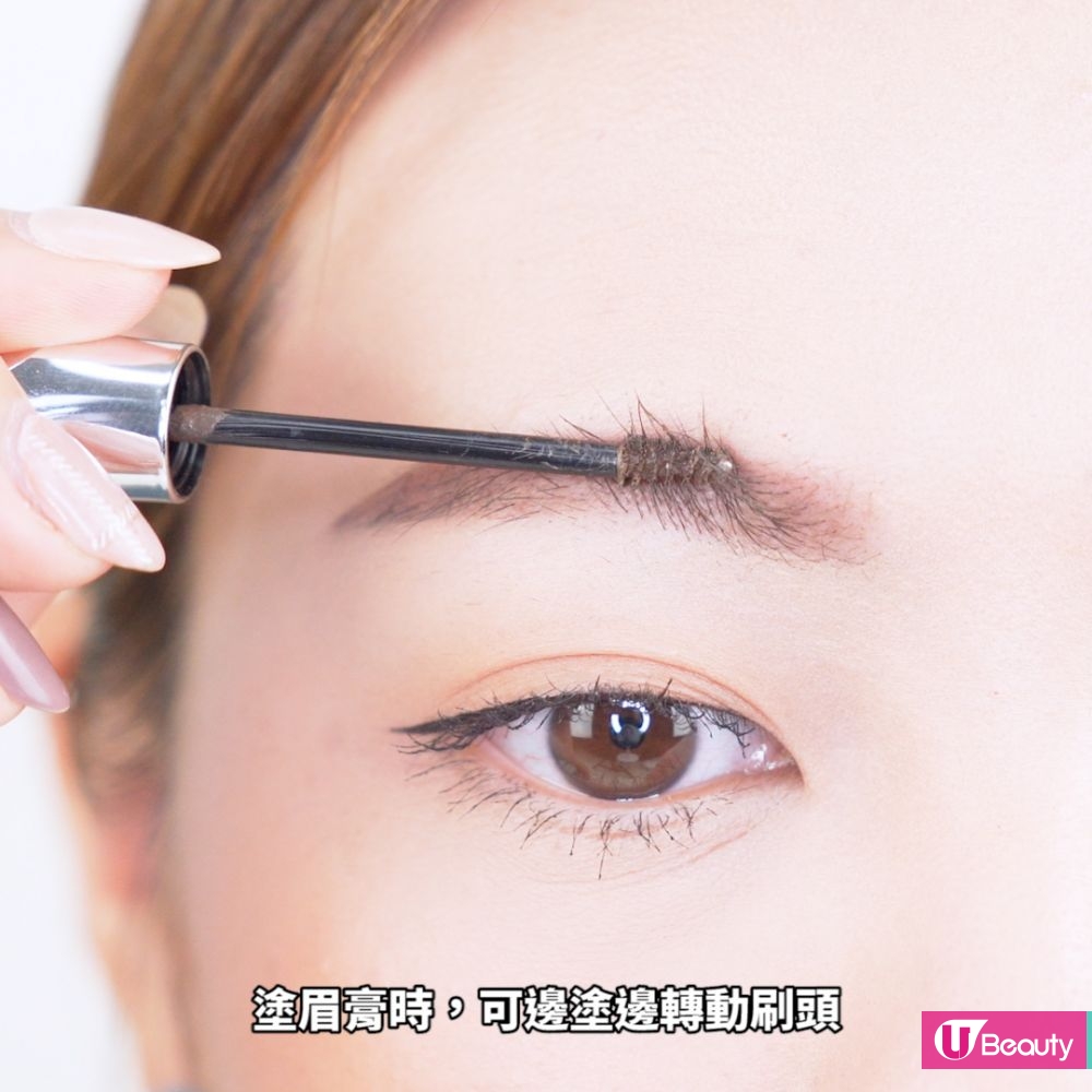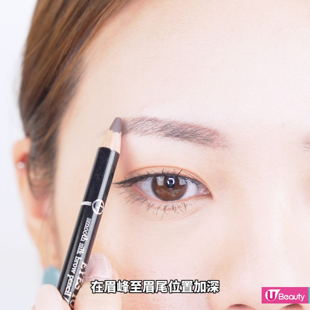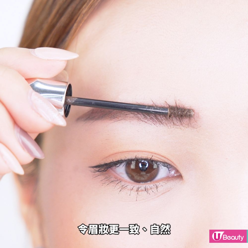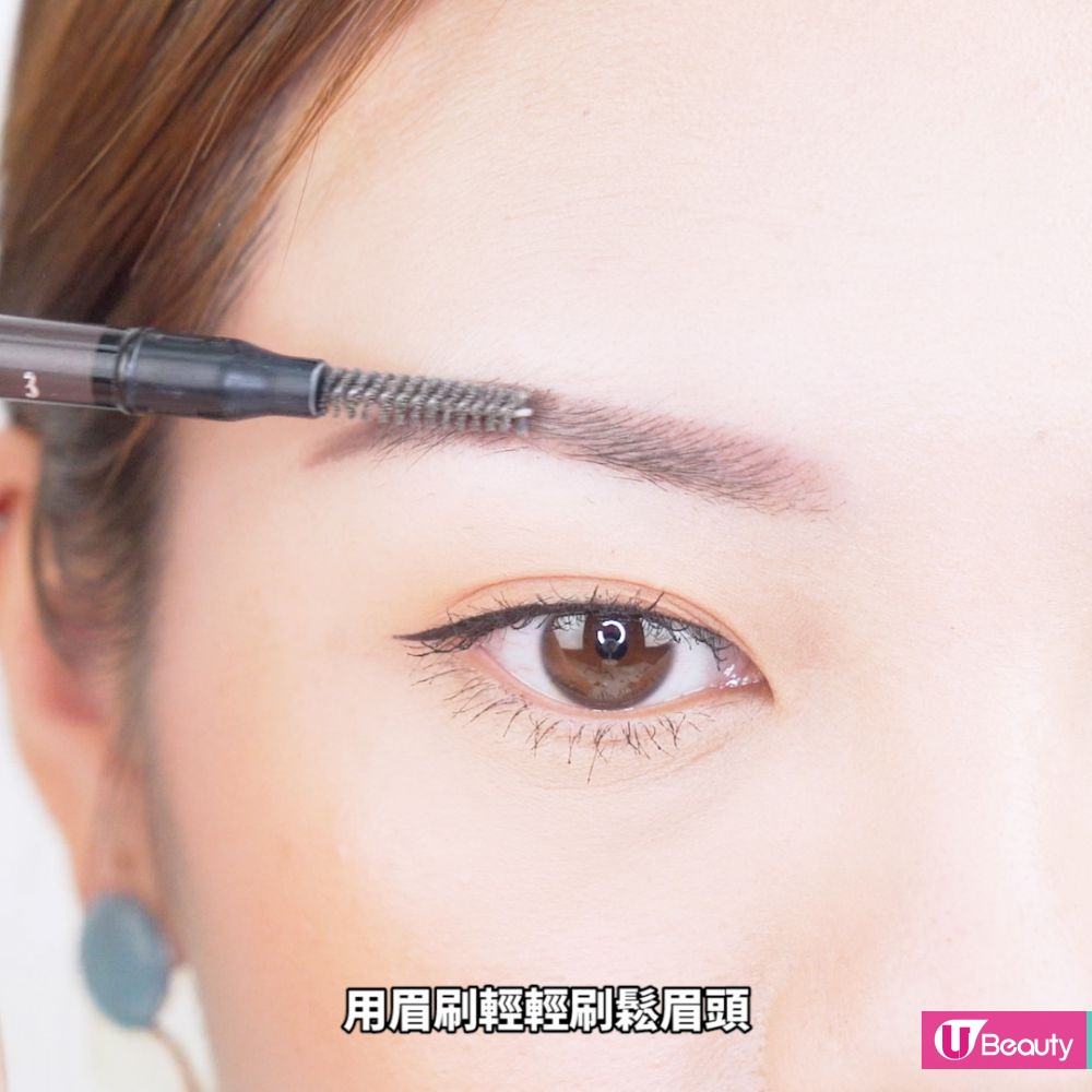 // 教學:先在眉頭位置輕力上色,在眉峰位置開始加深,可稍稍加長眉尾;最後用眉刷輕輕刷鬆眉頭,這樣就能做到漸變效果。