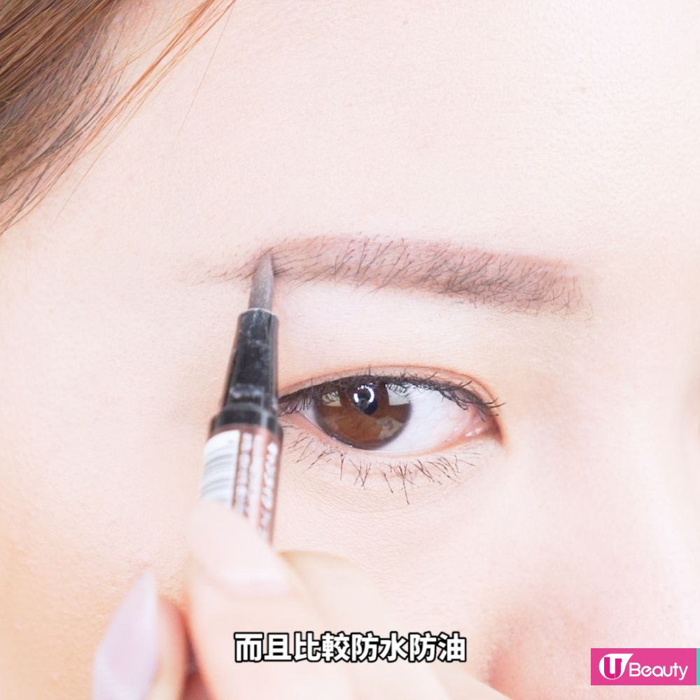 液體眉筆功能跟普通眉筆很相似,不過相對比較防水防油、持久度教高。用法簡單,畫出來的感覺有點像眼線筆,相比眉筆,液體眉筆能畫出更利落的線條。一筆可畫出2種感覺,想要歐美彎挑眉,可以大膽拉長眉尾;想要日系平直眉,可以保留自然眉形、只填補眉毛之間的空隙即可。