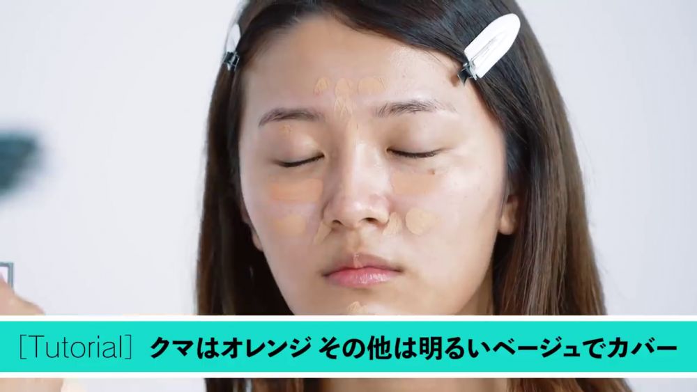 Tips 2︰黑眼圈使用橙色遮瑕膏,其餘位置使用自然膚色,或是以偏明亮的色調塗於鼻樑、法令紋、臉頰等位置,使五官更立體。