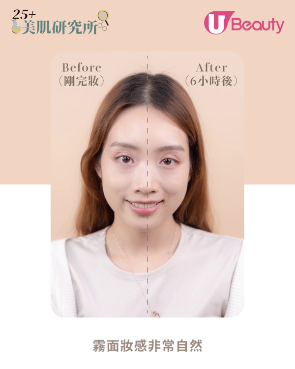 美編Euphemia實測「神級膠水底妝法」,霧面妝感非常自然、貼服。持妝6小時後再觀察妝容,出油不算嚴重的美編,整個妝容大致完整維持,連經常卡粉的鼻翼位仍然十分貼服!