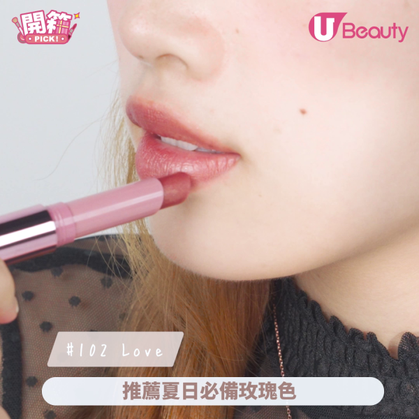 推薦夏日必備玫瑰色#102 Love,散發低調氣質。加入細緻「柔光微珍珠粉末」,隨光線折射雙唇更豐盈立體。想擁有法式立體迷人嘴唇,沒有難度!