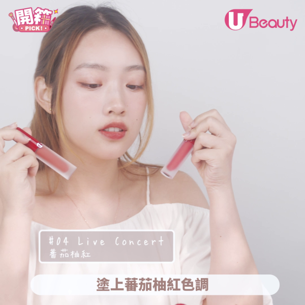 想給人煥然一新的感覺,塗上#04 Live Concert蕃茄柚紅。橘紅色調,讓你立即散發時尚朝氣感!