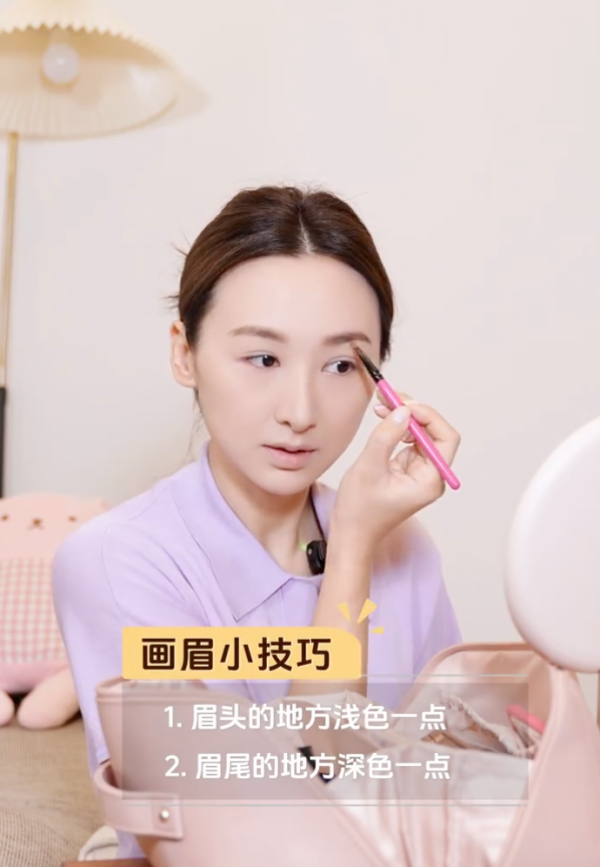 眉毛的塑造是關鍵之一。淺色眉粉填滿眉頭,深色眉粉填補眉尾空隙,再用眉刷輕畫眉頭,眉筆在眉尾輕畫,最後用眉gel定型,打造獨特的眉形及毛流感。