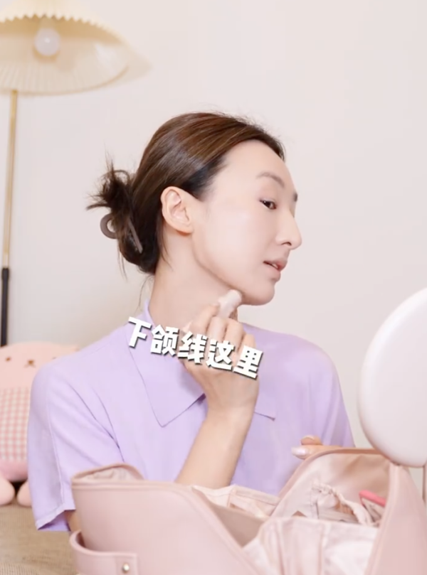 在修容方面,高海寧強調了下頜線的重要性,從顴骨位置開始,再從下頜線畫下去,搭配美妝蛋推開,呈現自然的陰影。最後,用化妝掃全面輕輕掃上一層碎粉,使膚色更加統一,並在鼻尖上搽上高光粉。
