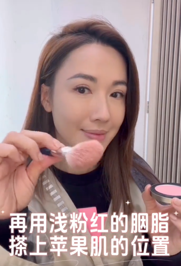 胭脂的選用上,李施嬅強調使用淺粉紅色調的胭脂,搽在蘋果肌位置,打造出自然好氣息,與拼搏的形象相得益彰。最後,唇妝方面,強調了自然裸色唇筆的使用,勾勒出嘴部輪廓,再搽上自然感重的唇膏,呈現出淡淡的自然唇色。