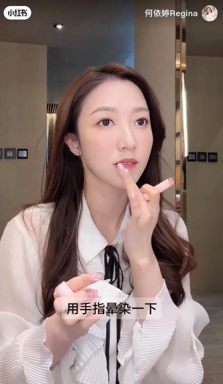 在唇妝方面,何依婷建議先搽潤唇膏,然後再搽上紅色唇彩,最後用手指輕輕暈染,使唇妝更自然飽滿。