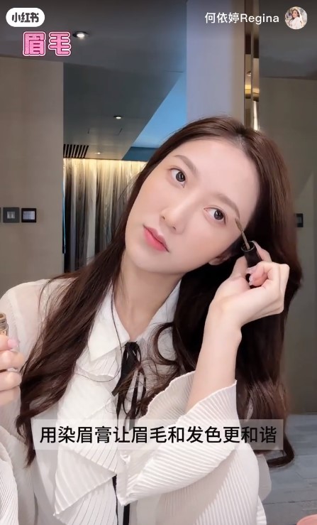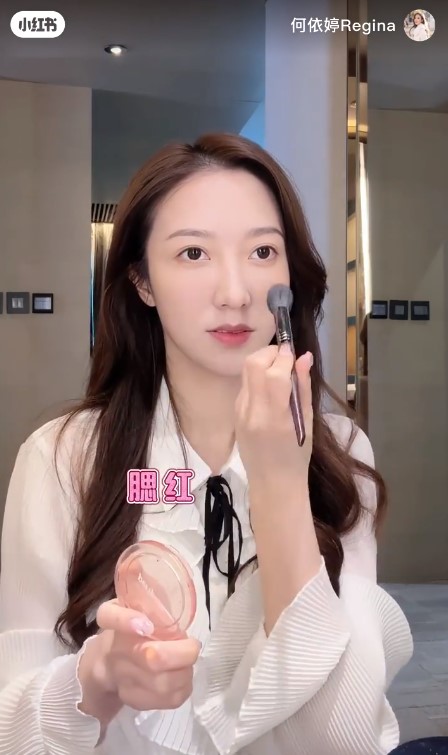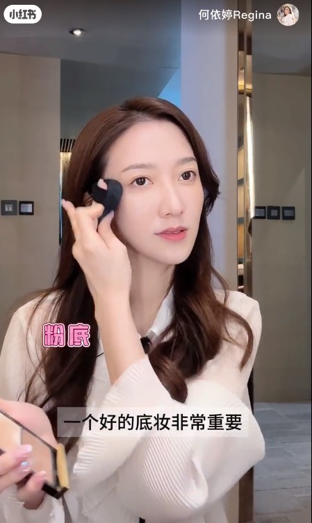 何依婷近日在社交媒體上分享了如何打造劇中「徐曉薇」一角的女主播妝容。首先在底妝方面,何依婷強調了良好的底妝對於妝容的重要性。她建議先進行遮瑕,然後使用碎粉進行定妝,使妝容更持久。在底妝完成後,她以胭脂於蘋果肌位輕輕掃幾下,並在下巴、顴骨位置上陰影,巧妙運用修容粉讓臉部更顯立體,上鏡更加顯臉小。