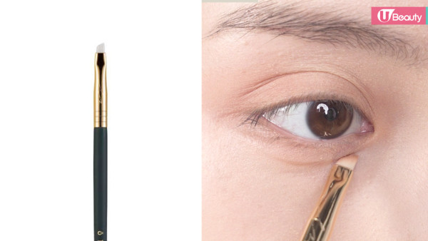 極小三角斜掃,可以精準地勾勒眼線、眼尾、臥蠶陰影、眼尾三角區,甚至於可用來畫一根一根的眉毛,打造不經意的放大眼睛效果!
