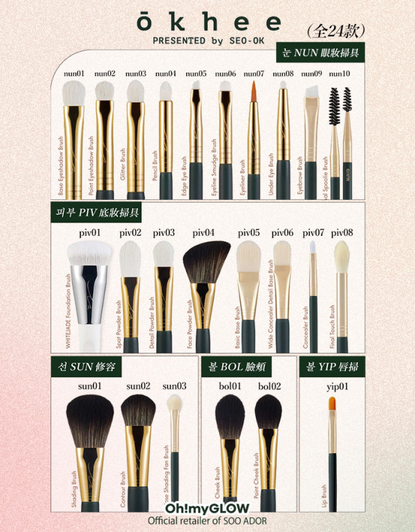 okhee化妝掃深受清潭洞化妝師、一眾女星的喜愛。以平價好用,掃具質量高,同時僅百元即可入手。掃毛極柔軟、有彈性;掃頭大小更適合亞洲女生,專門為「精緻準確」的韓式妝容而設。有了呢套神級掃具,相信愛美的各位,只要好好練習,大家都可以擁有化妝師神奇的手!
