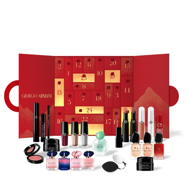 今年ARMANI beauty聖誕倒數月曆,將Giorgio Armani NEVE滑雪系列放進設計靈感,配以品牌標誌性的紅色和金色為節日氛圍元素,內藏24件驚喜產品,包含11件正裝皇牌人氣產品,及迷你裝的皇牌化妝品、香水和護膚產品。當中正裝產品包括剛推出的Prisma Glass鏡光水漾唇蜜,以及Lip Power輕柔緞亮唇膏、Lip Maestro Satin絲絨水漾唇釉等人氣大熱唇妝產品。