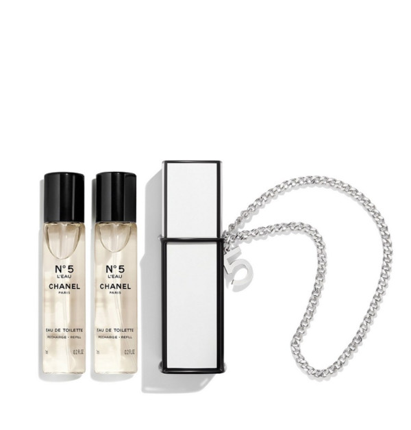 最新N°5 L’EAU Eau de Toilette和N°5 Eau de Parfum以Purse Spray為今年節日呈獻非比尋常的香水演繹新方式。限量創作可隨身攜帶,更附設綴有Chanel女士幸運數字「5」裝飾的創新首飾鏈,可戴於腕間。