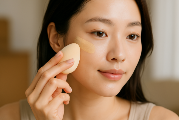 上妝時應採用「少量多次」的方式,每次輕輕點印於肌膚上,避免厚塗,確保妝感通透自然。建議使用美妝蛋或柔軟粉撲進行點壓式上妝,比起刷具或手指更能均勻推開底妝,營造零厚重感的偽素顏效果。