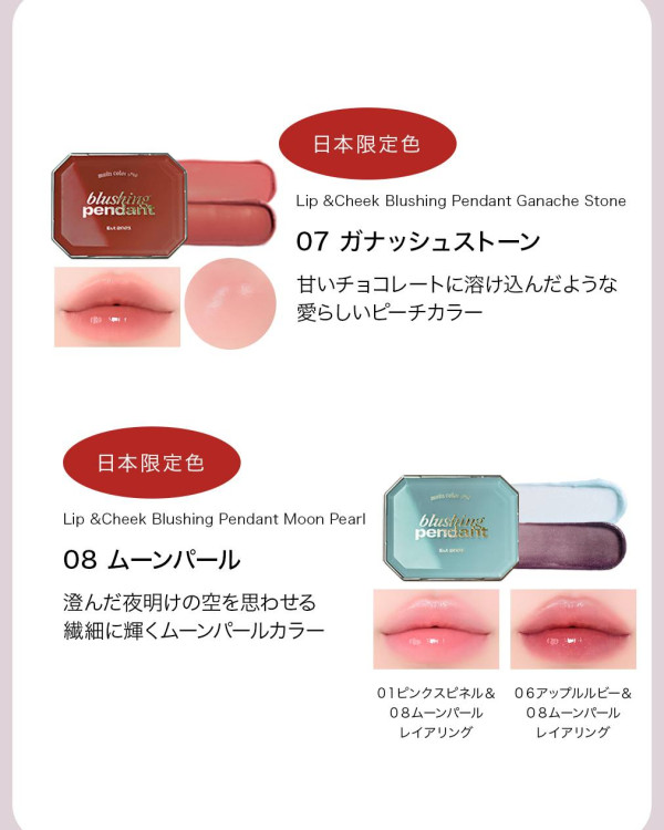 Alternative Stereo Blushing Pendant | ¥2,145 | ★★★★★ | 唇頰兩用膏 | 提供 Glow (光澤) 與 Velvet (絲絨) 兩種質地,塑造水光嘟嘟唇或霧面絲絨頰 |