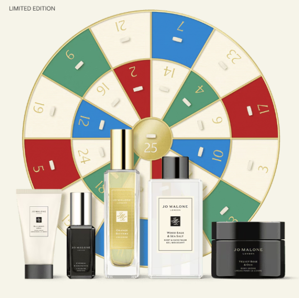 Jo Malone London 聖誕倒數日曆分別推出了12 日聖誕掛飾、12 日聖誕掛飾兩款,前者精心細選 12 款英倫迷你古龍水、香氛蠟燭及沐浴與身體產品;後者以復古飛鏢鏢靶為靈感設計限定禮盒,內藏25款節日限定香氣到經典古龍水、香氛蠟燭及迷你沐浴護膚奢品,更包括一瓶 30ml 慶典香氛及旅行香氛蠟燭。