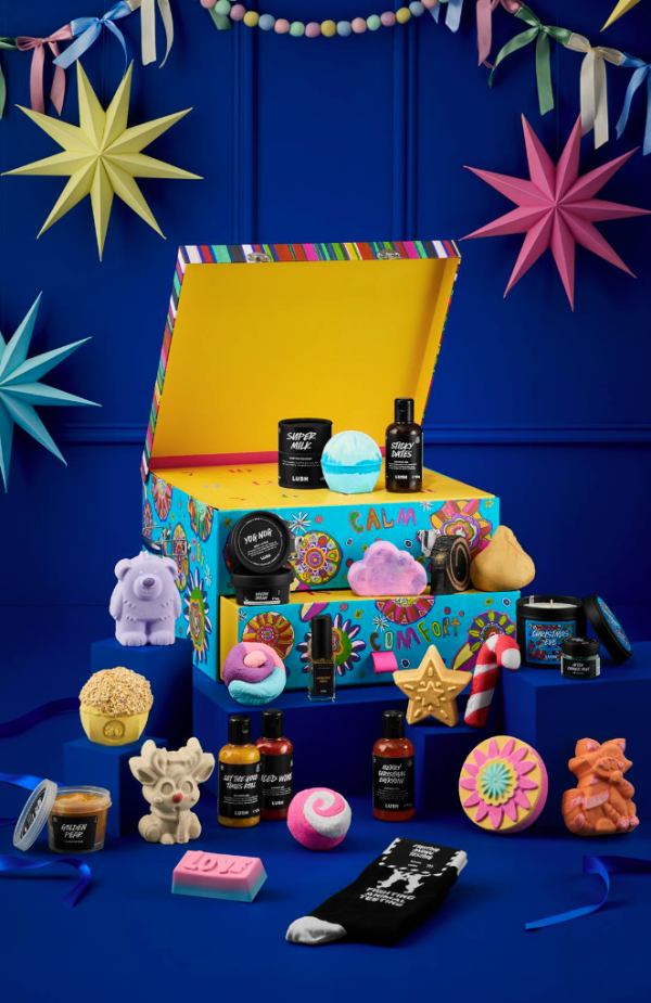 Lush這款禮盒上的插畫由 Artbox London 藝術家 Shruti Gadhvi 創作,精選了全年暢銷、聖誕節限定系列的熱門產品,從泡泡浴芭、沐浴露、香氛皂,到香氛蠟燭和襪子都有!