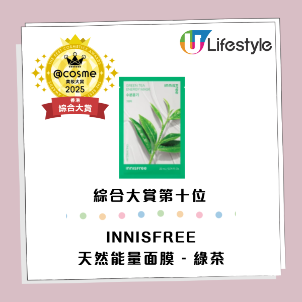 連續3年獲得第1名或連續5年保持前3名的產品,才能獲得@cosme香港美妝大賞殿堂賞的殊榮。INNISFREE控油礦物散粉連續多年稱霸榜單,以細緻粉質,定妝力高強聞名,特別深受油性、混合肌膚人士喜愛!
