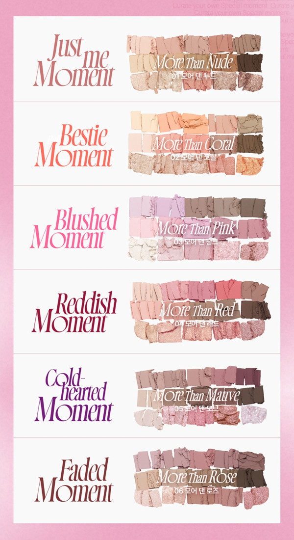 來到 MOKO 店,重點必搶一定是全港獨家登場的 「Pocket DIY Palette 個人化定制工作坊」!別再擔心眼影盤裡有廢色了,這裡讓你自己做主!顧客可自選 5 款心水色號,即場砌出 100% 實用、零廢色的專屬彩妝盤,這也是目前韓國最流行的美妝玩法!