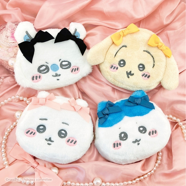 這款收納包採用柔軟的毛絨材質,直接以 Chiikawa 角色的大頭造型呈現,觸感極度柔軟治癒。圓滾滾的造型非常討喜,小巧可愛,而且每個角色頭上都繫著不同顏色的絲帶蝴蝶結,設計細節滿分,很適合用來收納隨身的化妝品、零錢或是各種小物。每款售價為日圓2,750(約港元$138)。