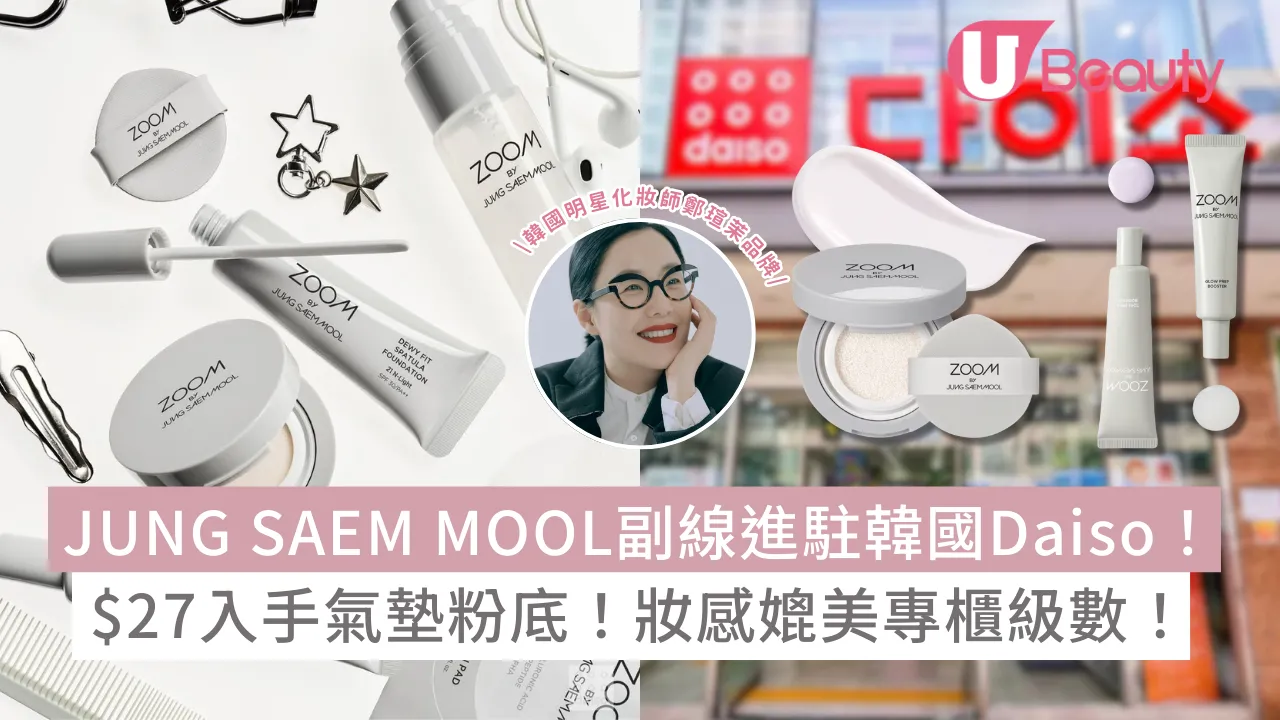 由韓國彩妝大師鄭瑄茉創立的品牌 Jung Saem Mool 驚喜推出平價副線「Zoom By Jung Saem Mool」,已於2026年1月5日進駐韓國 Daiso,並推出一系列妝前護理與自然底妝用品,當中討論度最高的是以下的明星級單品:
