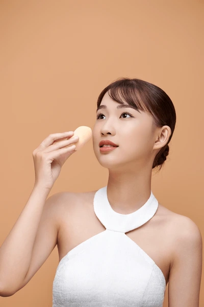 建議改用「美妝蛋定妝法」,先將噴霧噴在化妝海綿或刷具上,再輕壓上妝,效果同樣貼服。
