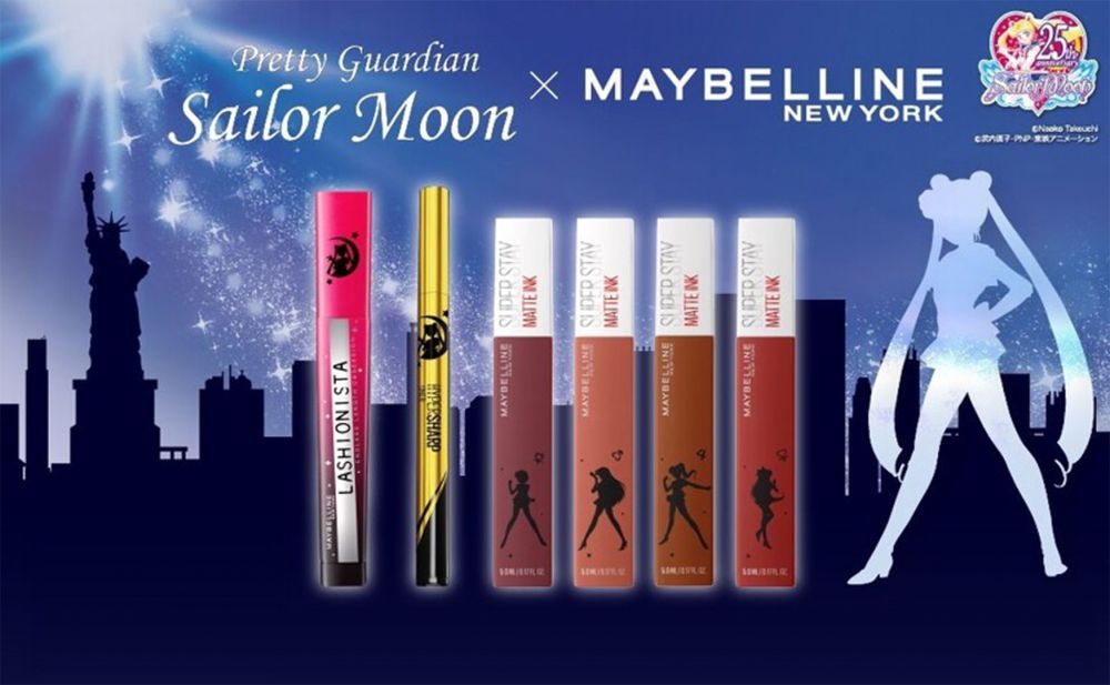 Maybelline x 美少女戰士聯乘系列以「Girls Power Make Up」為概念,將經典角色的剪影印在Maybelline的皇牌產品上,目前公佈的限量產品包括液態唇膏、眼影、睫毛液及睫毛液,很可惜聯名系列只限日本國內販售,想入手的朋友就要代購了!預計4月17日上市。