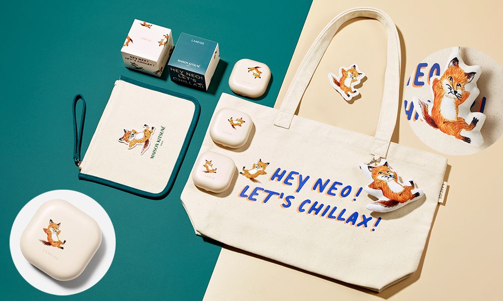 最近,韓國美妝品牌LANEIGE氣墊粉底,聯乘法日超人氣潮牌Maison Kitsuné小狐狸,合作推出限量套裝!深受女生喜愛的高顏值Neo Cushion「小方塊」氣墊,奶油白色粉盒上將出現一個可愛身影,簡直可愛到犯規!今次入手氣墊粉底,更會附送Maison Kitsuné的帆布化妝袋或環保袋,超抵買啊!