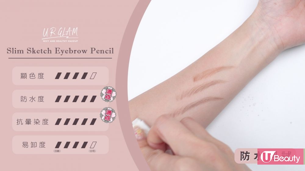 眉筆也是其中一樣推薦大家入手的商品!抵買就不用多說,顯色度令我十分驚喜,色澤自然,而且顏色選擇夠多,適合大部分香港女生膚色。我在選購眉筆時,除了揀適合自已眉色外,也會看它的防水度,尤其夏天有不少水上活動,很怕一上水變成「無眉娘」!這款眉筆通過我的防水測試,即使沾水後用紙巾拭乾,眉色都被不會抹掉,因此也建議用眼唇卸妝液卸妝,會比較好清潔。