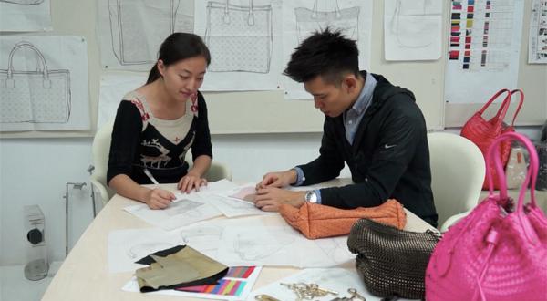 與寧靜的設計室相反,樣版室充滿了繁華的活力,而工人都十分年輕和熱心發揮自己的創造力。有些工人負責測試新的編織方法,使用不同大小的皮條來創造圖案。有一位小師傅正在玩弄皮革的染料,試出更多顏色的搭配。透過trial and error的過程,Sabrina Scala的手袋就是這樣誕生的了。