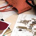 到達專屬Sabrina Scala的部門,發現這裡與工廠其他生產部門差別很大。Sabrina Scala有自己的設計室: 一個潔白、佈滿各種"設計玩具"的空間。桌子上放滿了大大小小、不同類形的袋扣和配件,有金的、銀的、玫瑰金等配飾。金器旁邊就是皮革世界,放著一片片紫色鱷魚,裸色牛仔,藍綠蛇,橙鴕鳥等的皮革樣品。雖然設計師Alfred和他的助手正在忙碌著,他一看到我還是很有禮貌地招代。我們接著便坐下來開始聊天。