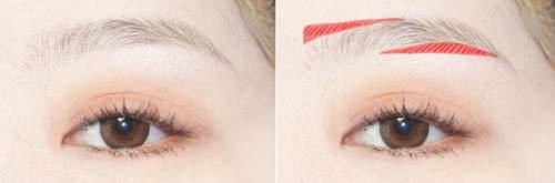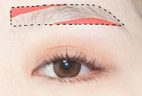 而重點就是要填補沒有眉毛的地方成為一字型(上圖標示的那兩塊區域),所以先刷上眉粉。