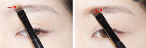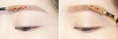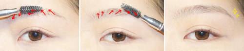 眉型出來了,但還要搭配髮色,所以再用染眉膏,順著箭頭方向刷。
