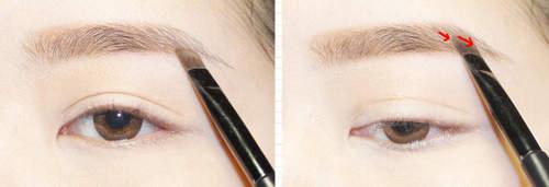 眉筆是畫出自然眉毛的一步。從眉頭開始,細心地逐漸地填補眉型缺失的部分,以輕觸式的的方法,畫出看似眉毛的線條。