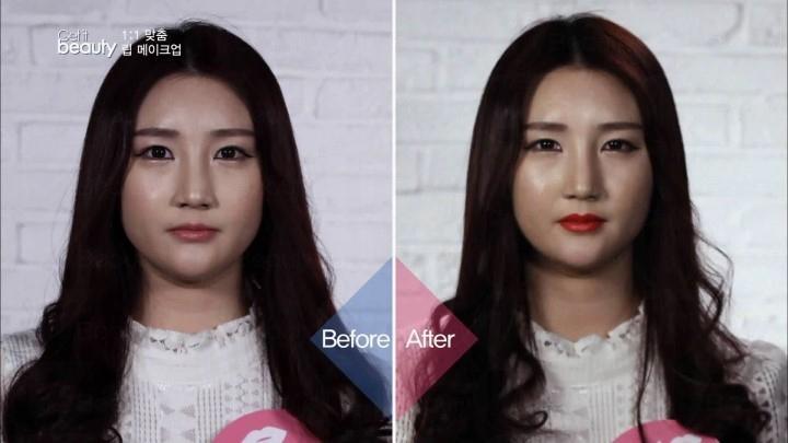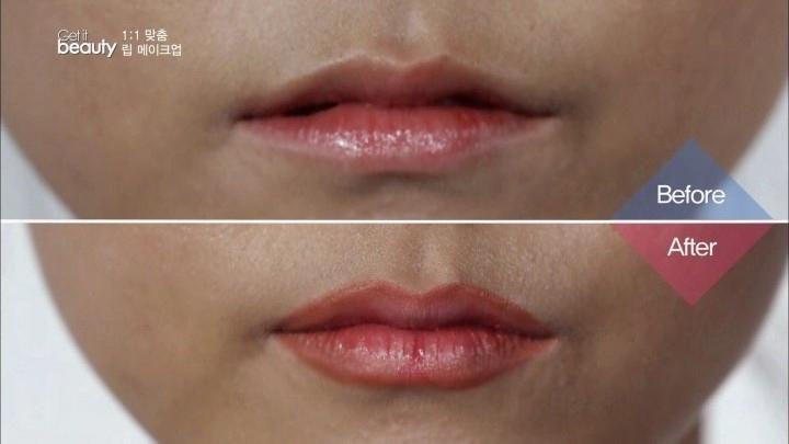大功告成! 看看前後對比圖,嘴唇變得對稱,而且上、下唇厚度一致。