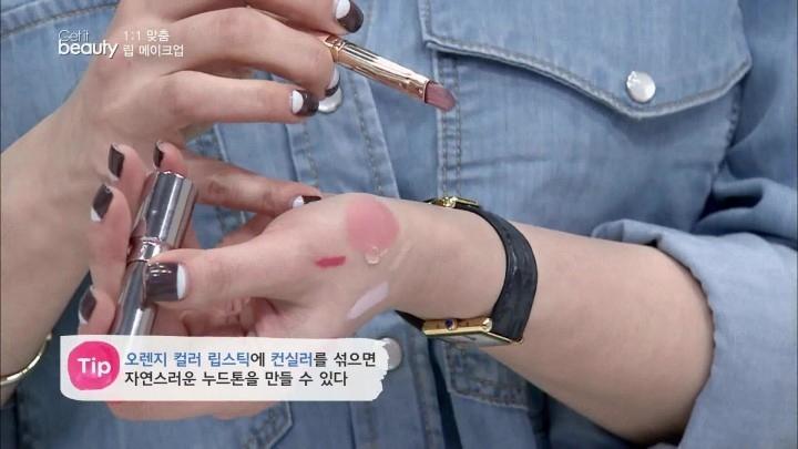 Step3 : 把剛才使用的唇膏混合小量遮瑕膏調成裸色的唇膏,塗抹全唇。