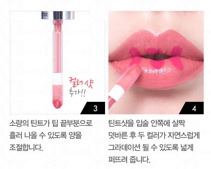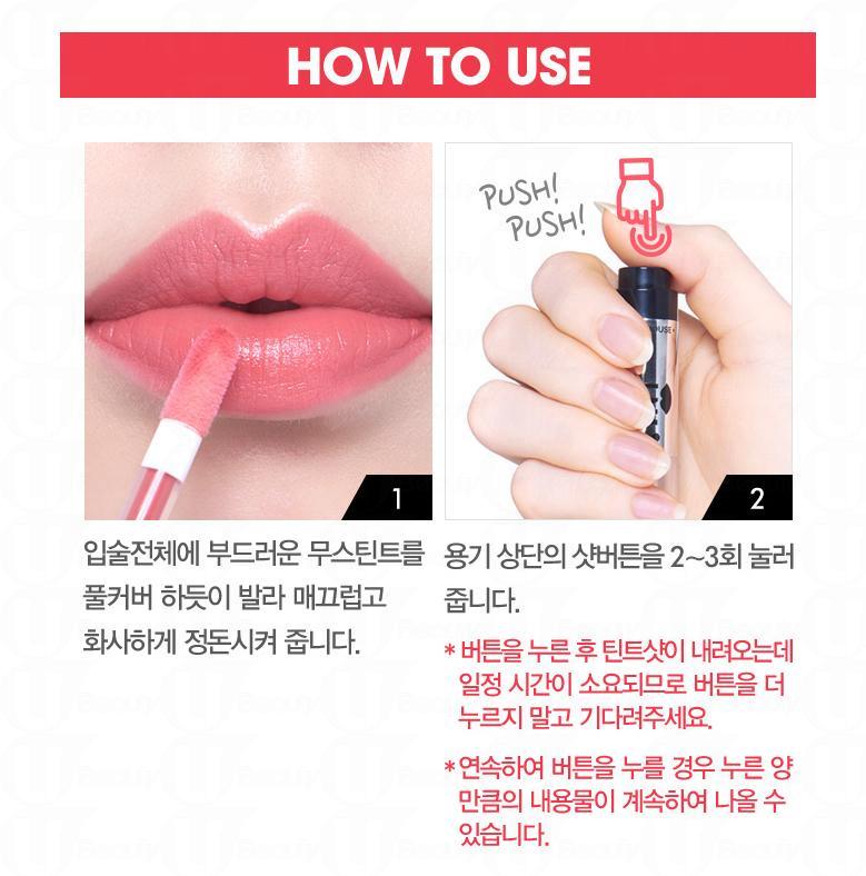 使用方法十分簡單,首先以底層的顏色為唇部打底,然後按一按頂部的按鈕2-3次,直到管中心的空隙被填滿,而刷頭有少許唇液流出便可。在雙唇內側塗上此色,再用手指輕輕推開便可輕易打造自然的漸變唇妝﹗