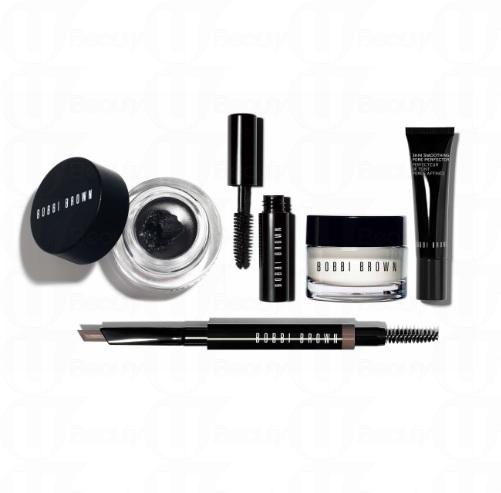 套裝包括:持久眼線啫喱迷你眼睫毛液 + 水盈礦物保濕眼霜 2.5ml + 毛孔細緻幼滑底霜 3ml + 炫目持久眉筆