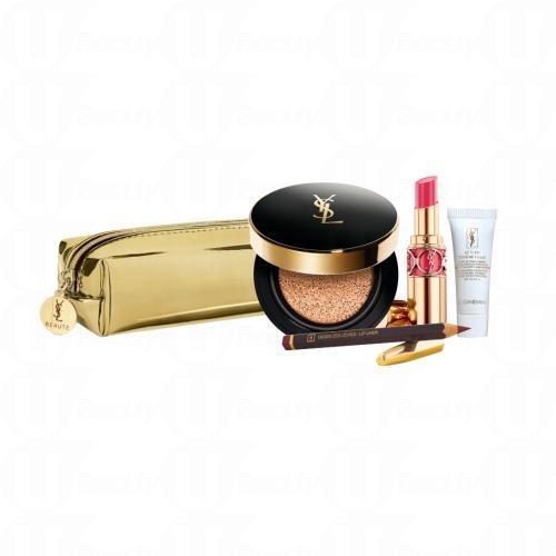 套裝包括:YSL Beauté 化妝袋迷你唇線 + 筆明彩透亮粉底液(B30) 5ml + 輕透無重羽毛氣墊粉底 或 任何粉底迷魅亮彩唇膏 或 任何唇膏