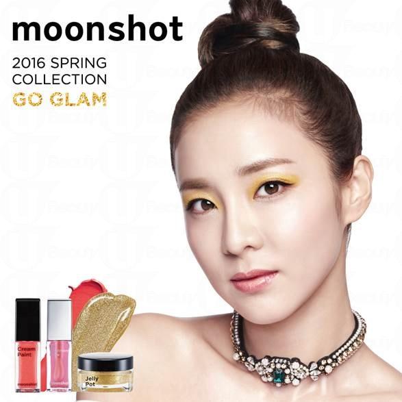 K-Beauty Icon Sandara熱推2016春夏妝容「Go Glam」,金黃色閃爍Jelly Pot為眼瞼綻放璀璨光芒,混和橘子橙色及閃爍金色 Powder Block眼影打造超高話題性的眼部化妝,Baby Pink Lip Treatment Glow則塑造可愛花漾豐盈唇妝,明顯勾畫3D立體唇型。Go Glam是Sandara今夏最愛彩妝。除了SS16產品外,moonshot更推出全新炫彩全能彩棒,配色艷麗,輕易塑造鮮明活潑唇妝。
