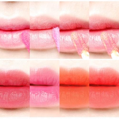 熱心的韓妹更貼出4款唇彩,共8色的示範。