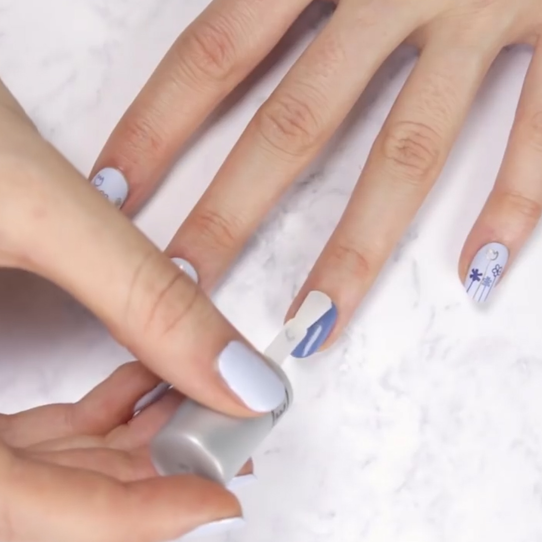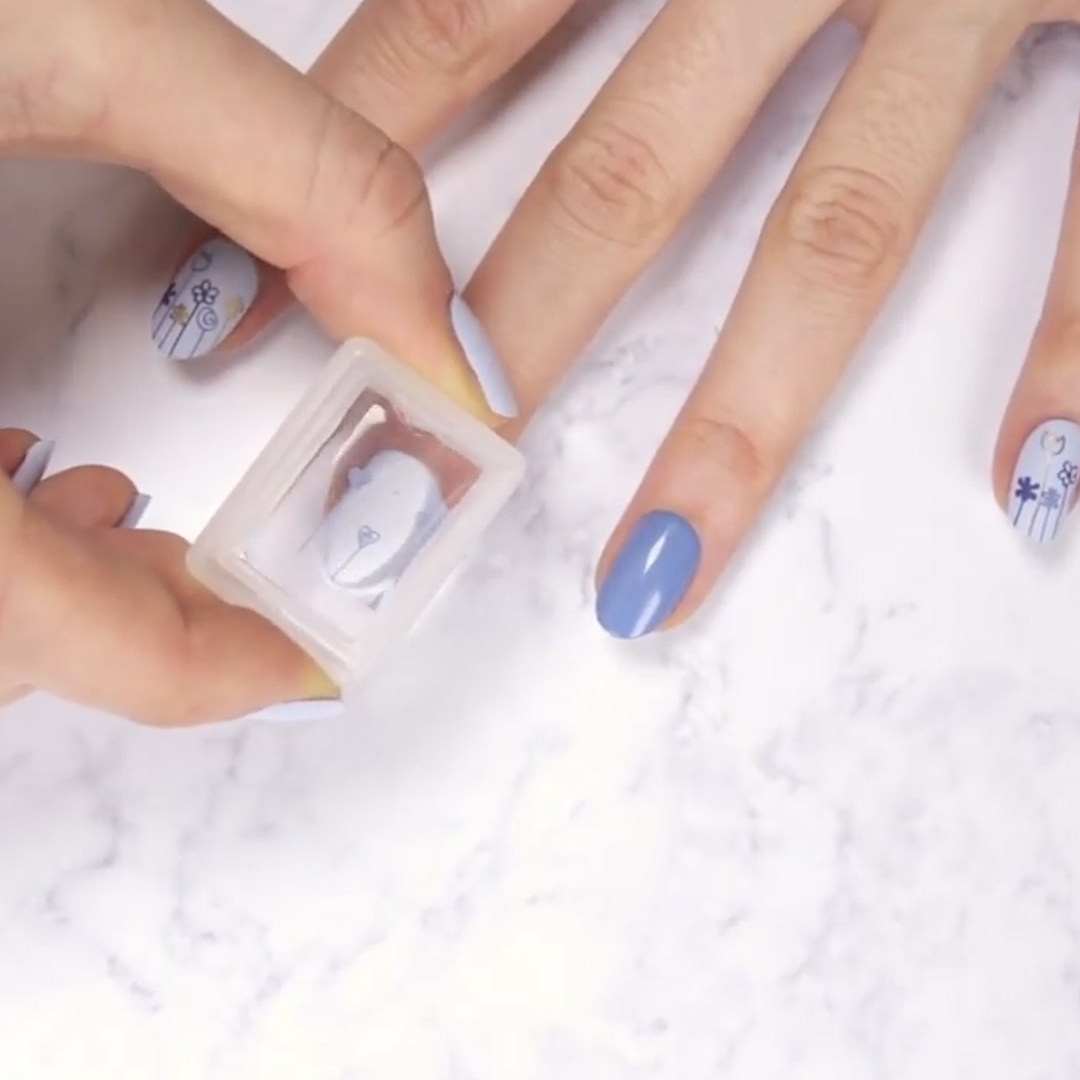 快到情人節了,換上這款心形指甲彩繪,由指尖開始打扮自己~粉嫩藍色配上小小的花朵及心形圖案,感覺很清新可愛。大家也可以依喜好把指甲油換成粉紅及紅色。