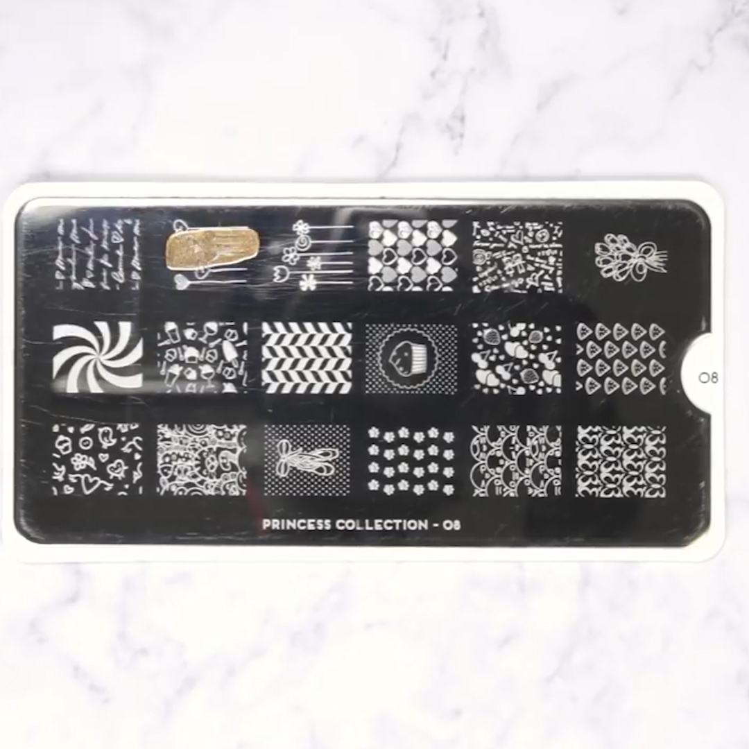 喜歡上述這款壓花圖案的朋友,可於英國MoYou London網店選購「Princess #07」以及「Princess #08」壓花板,售價為£5.9,約港幣$63.5。香港MoYou也有售賣這兩款壓花板,一塊售價為港幣78元,而壓花工具售價則為港幣128元一套。大家可以瀏覽香港MoYou的Facebook。