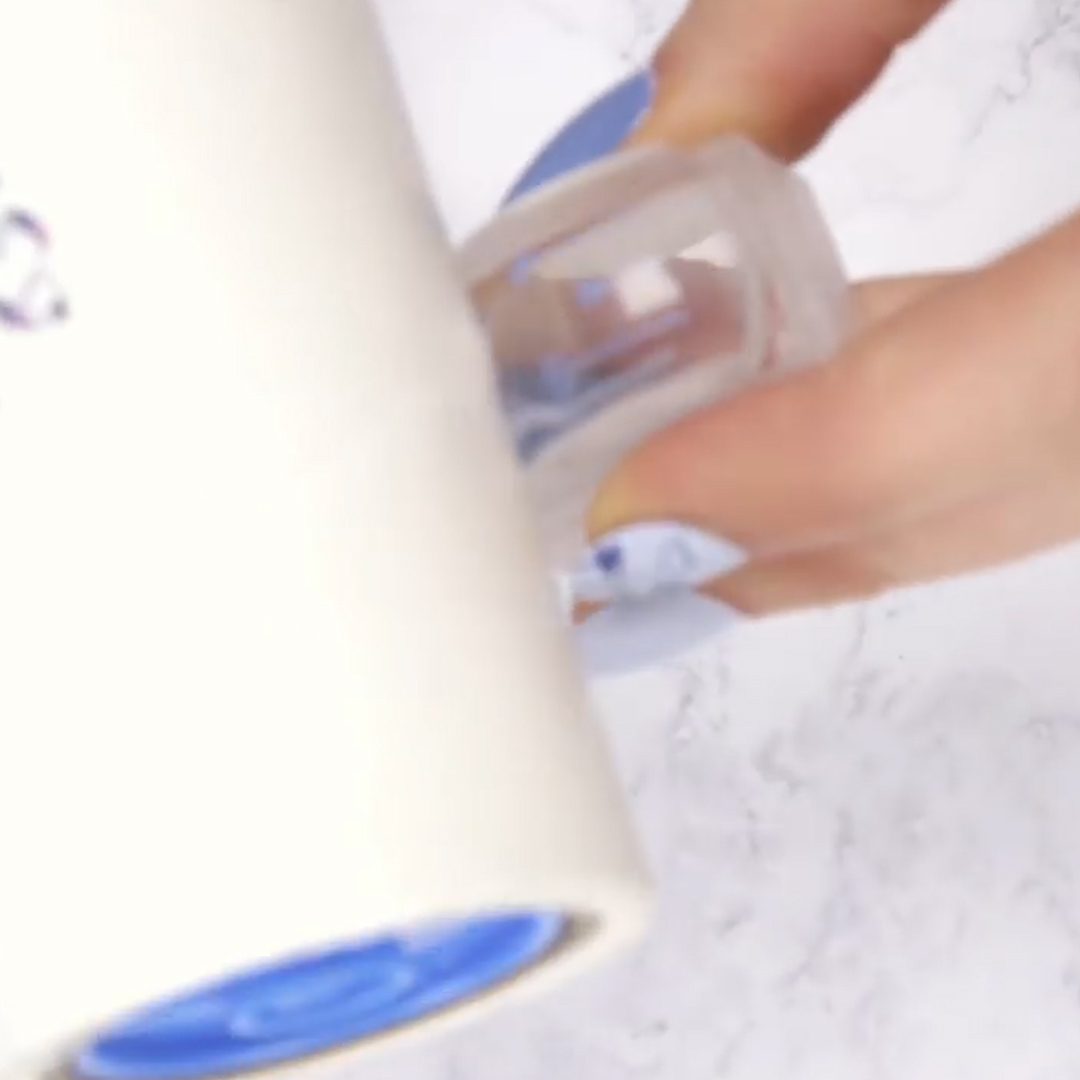 用印章轉印圖案,然後用點花筆和黏性滾輪(或除塵滾輪)去掉多餘的圖案。
