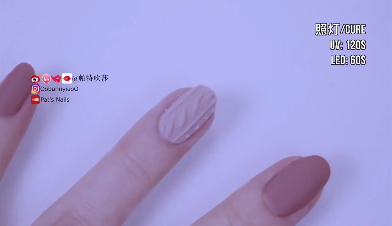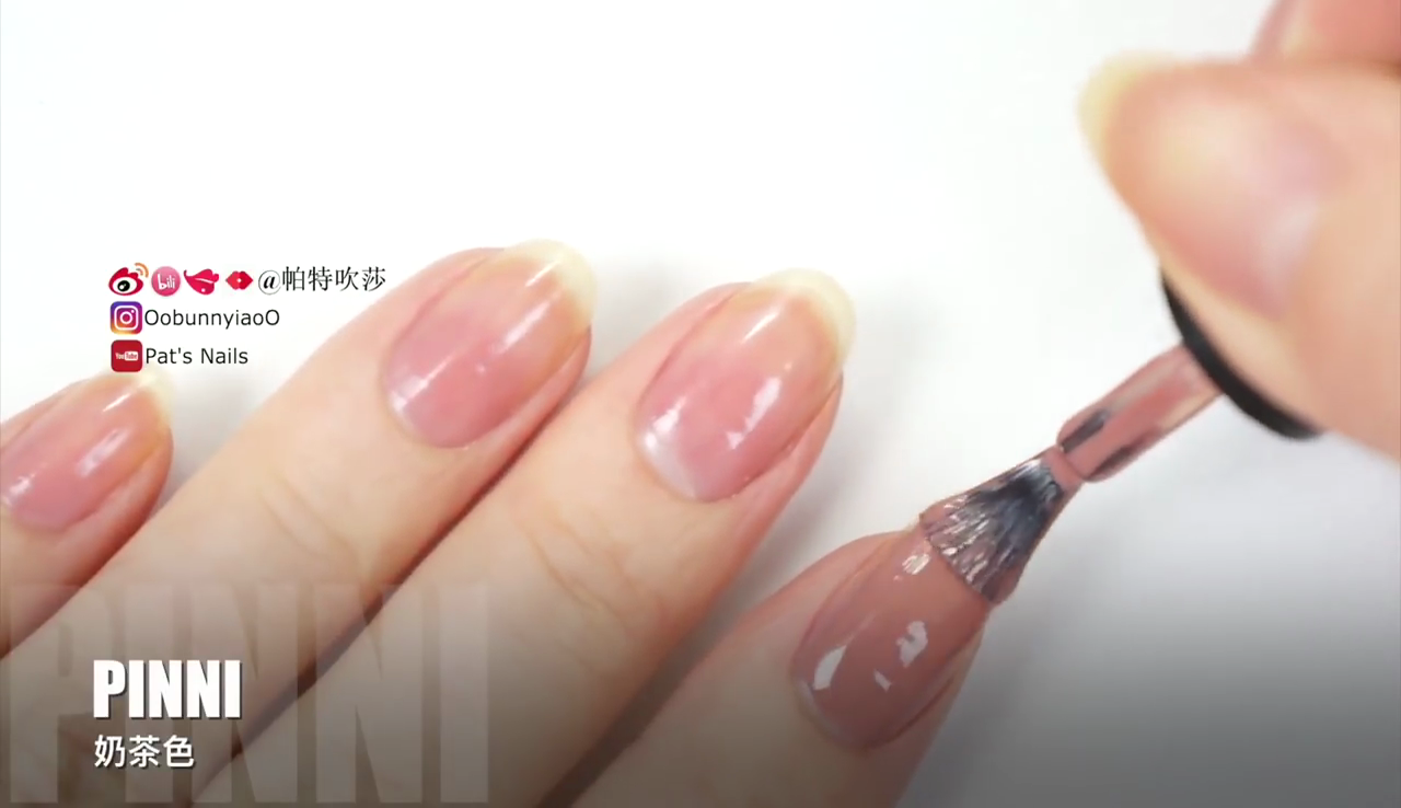 塗上底油後。塗上奶茶色及裸色甲油,照燈30-60秒。搽2層,使顏色飽和!
