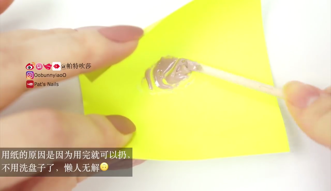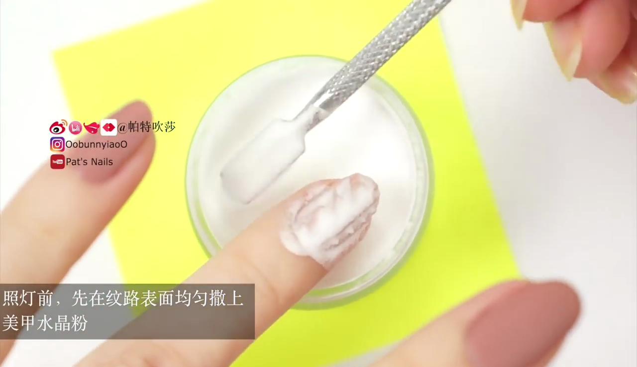 混合指甲水晶粉及奶茶色甲油。