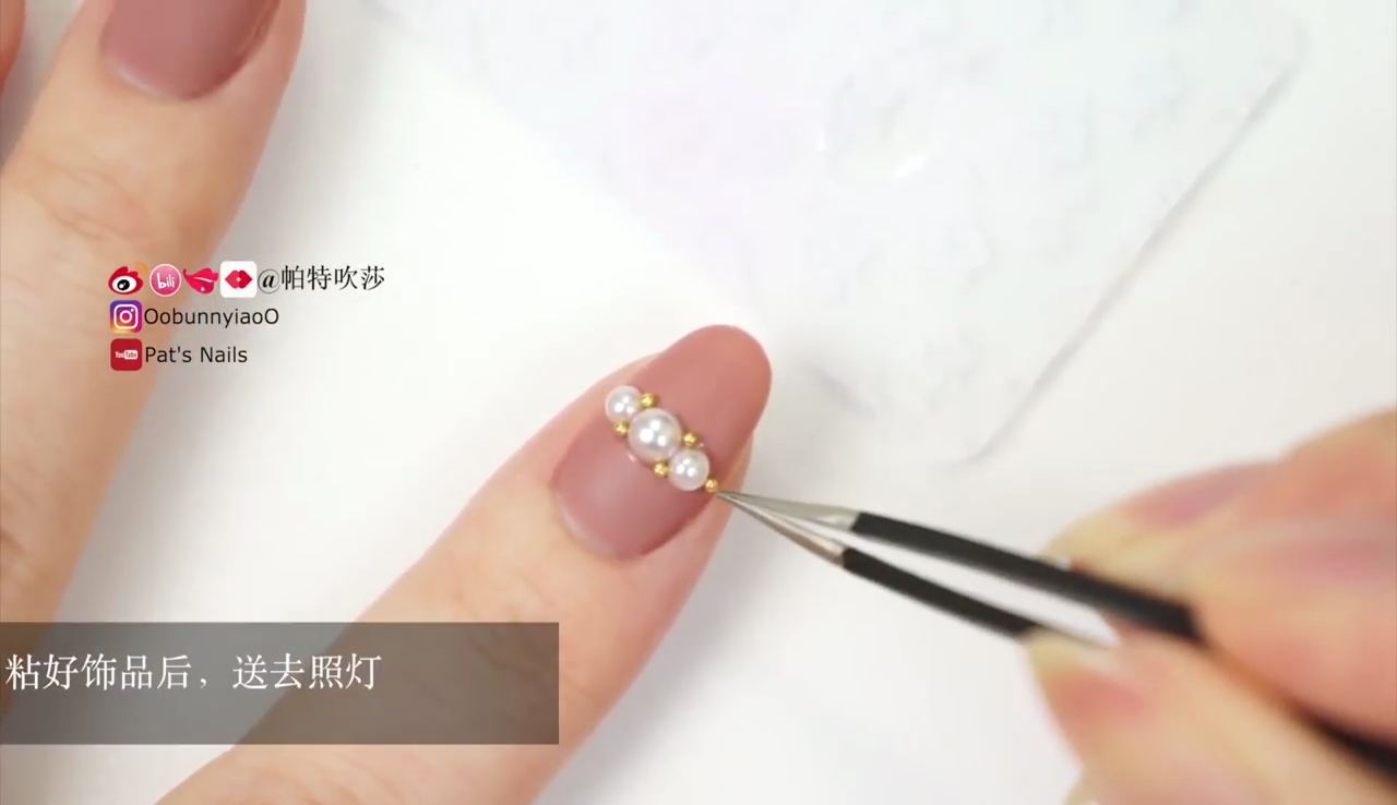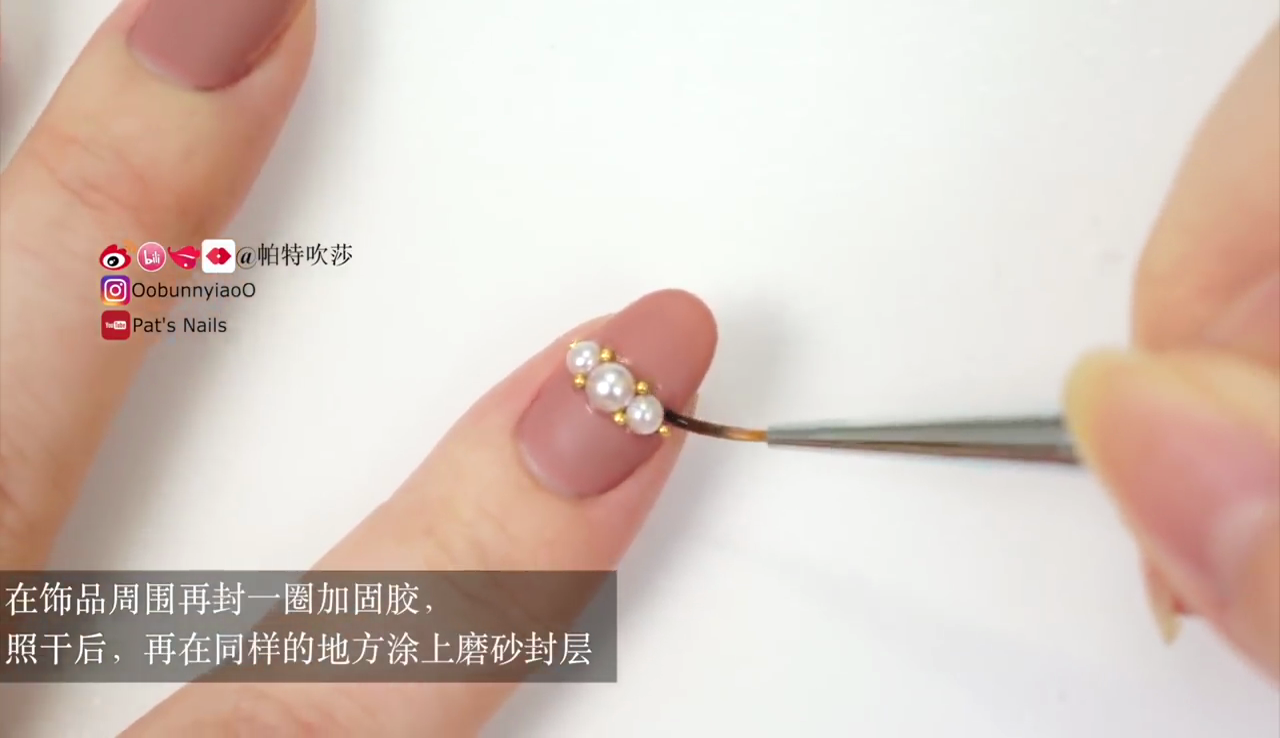 塗上加固凝膠,貼上珍珠裝飾。